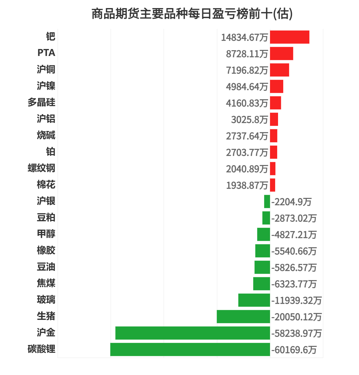 今日商品期货上榜机构席位中钯盈利第一,为14834.67万元。