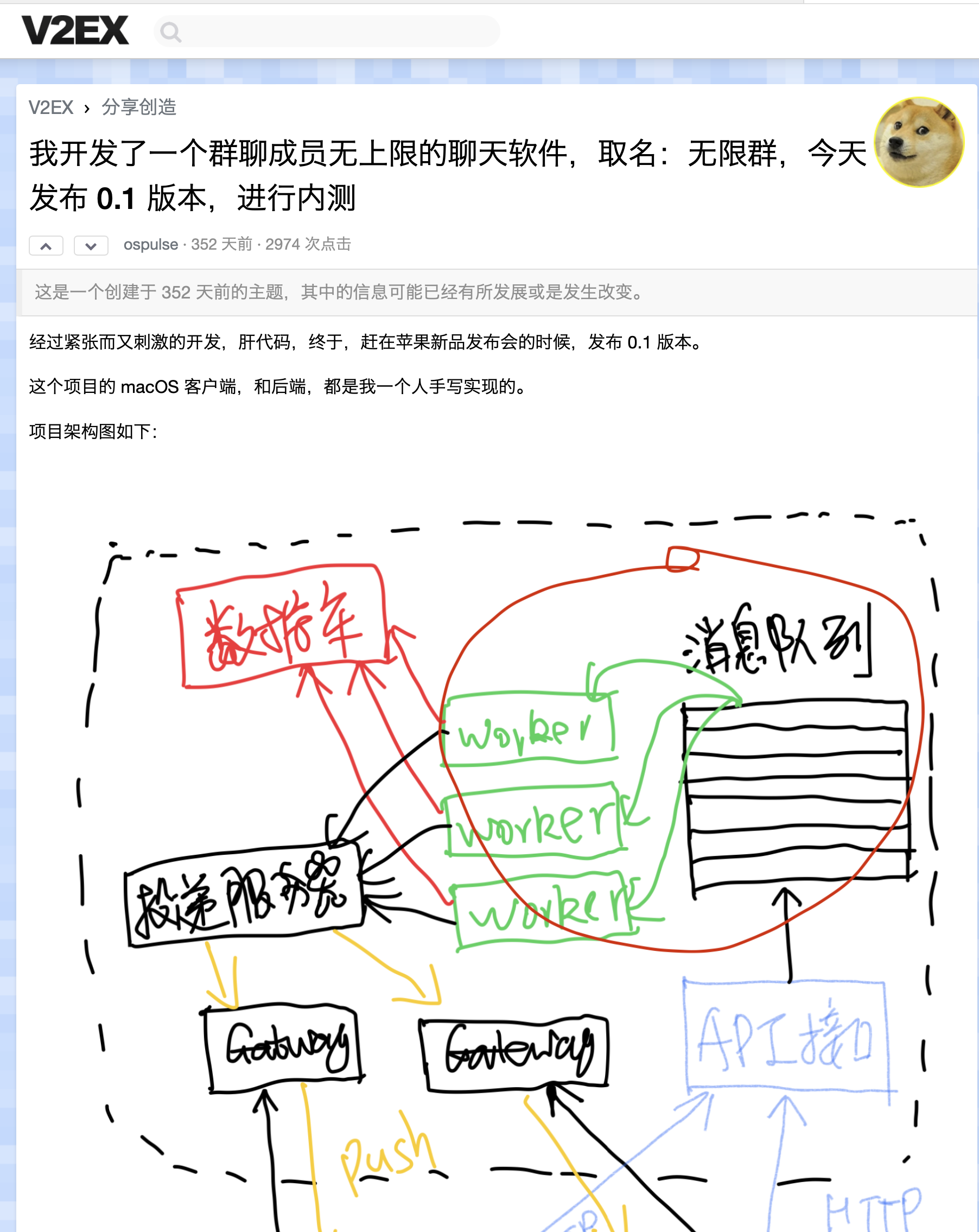 这是我当时在 V2EX(用小号)发布的宣传帖子: