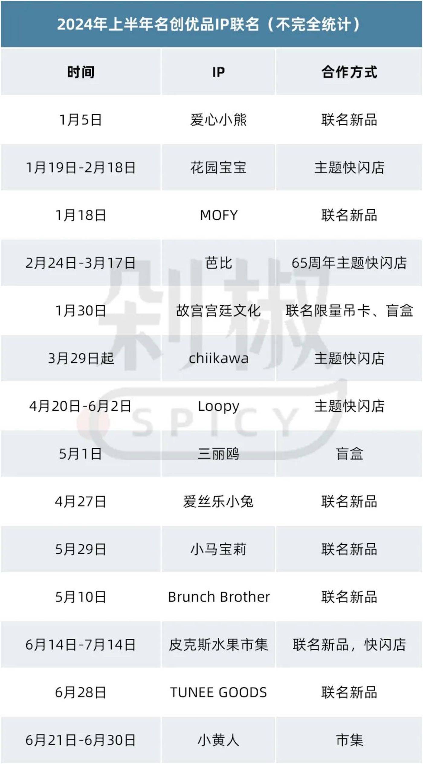 1.83亿授权费的具体给了哪些IP,支付方式如何,财报并未详细拆解。剁椒Spicy统计了今年上半年名创优品的多个重点IP联名案例,授权费的去向,可以从中大致获知。