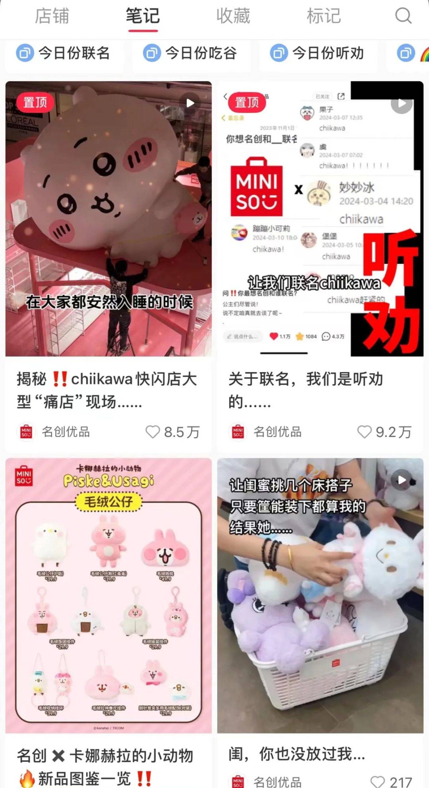 去年,名创优品与《芭比》的合作就掀起了一阵消费潮流。今年3月份,名创优品更是率先与热门IP——chiikawa达成了联名合作,在北京、上海等高线城市的核心商圈开启快闪店,吸引数万人排队采购。此次联名,也是chiikawa官方在中国市场首次推出的授权周边产品。