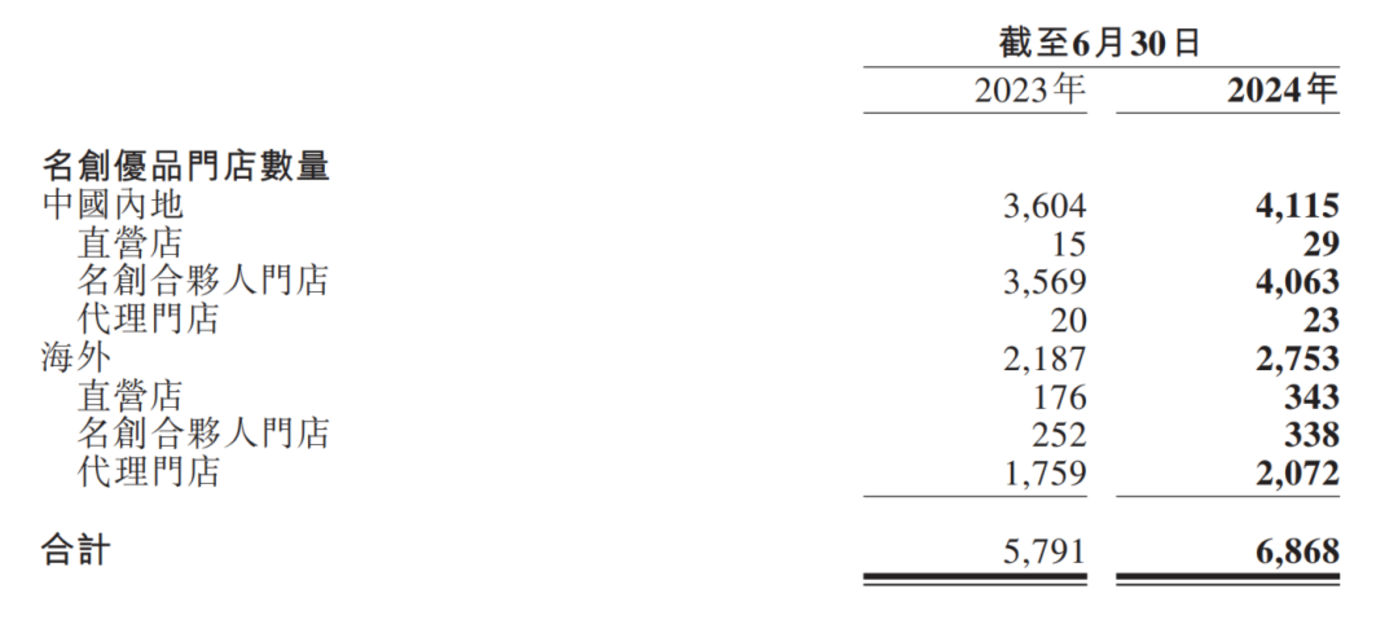 在此之下,可以看海内和海外门店各自的扩张趋势,早在2015年,名创优品就已经在尝试布局海外市场。根据2024年上半年的财报,截止目前中国内地与海外的名创优品门店占比分别是4115家、2753家,海外门店的占比超过40%,相比去年占比有所提升。