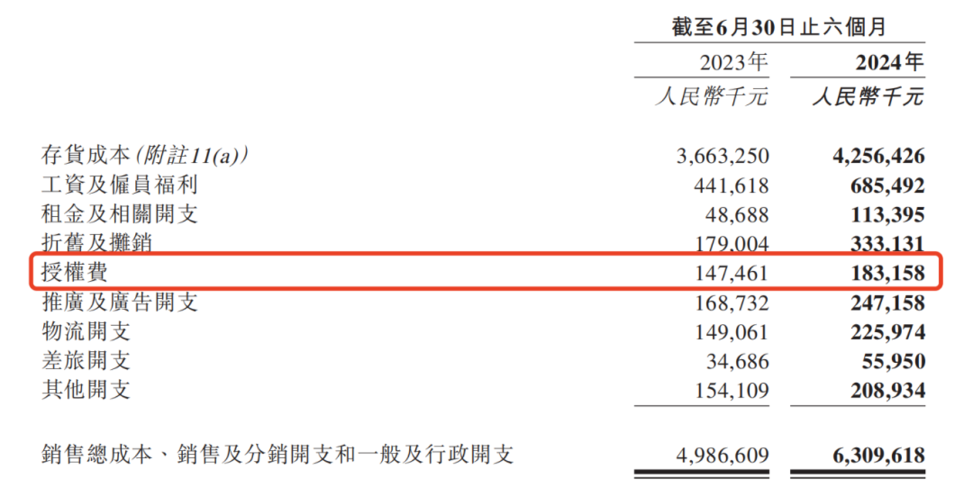 相应地,上半年名创优品的授权费也高达1.83亿元,授权费用同比增长24.2%,与总营收增长一致。