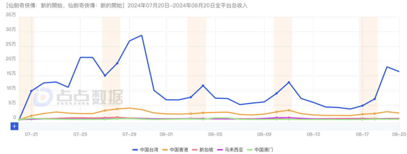 收入方面,截止至8月20日,《仙剑奇侠传:新的开始》30天时间,在五个海外市场双端收入约为3167万元(扣除平台分成),其中台湾市场贡献了2474万元(iOS平台约为2066万元,谷歌平台约为408万元)。