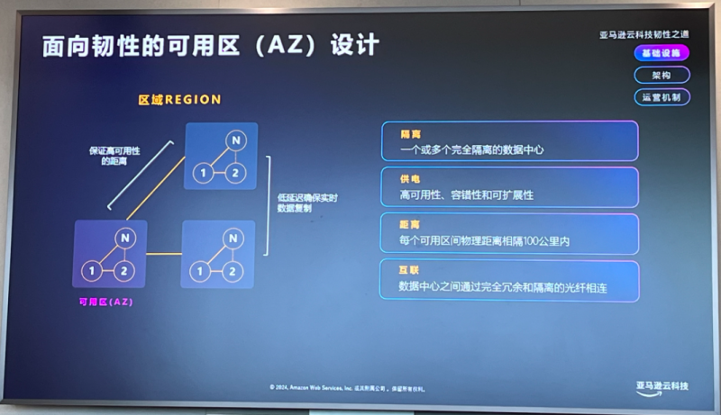 代闻强调道:“这种保障韧性的冗余设计的投资是非常巨大的,但是为了能够实现最高的可用性,亚马逊云科技不会在任何的设计标准和实施的时候打折扣。”