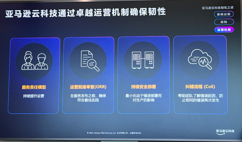 “为确保云服务的韧性,卓越的运营和机制至关重要,也是亚马逊云科技的差异化优势之一。”代闻强调。