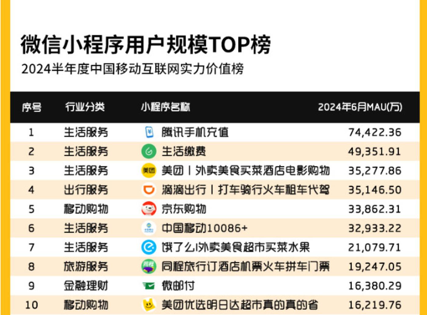 从微信小程序2024年6月用户规模TOP50榜单来看,京东、拼多多均位列其中,京东更是以3.4亿的月活位居第五。