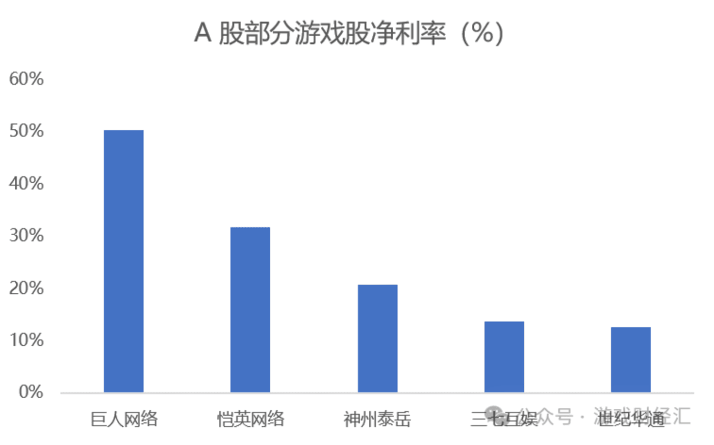 从净利率来看,巨人网络的净利率高达50%,恺英网络达到了30%以上,神州泰岳超过了20%,三七互娱和世纪华通均超过了10%。