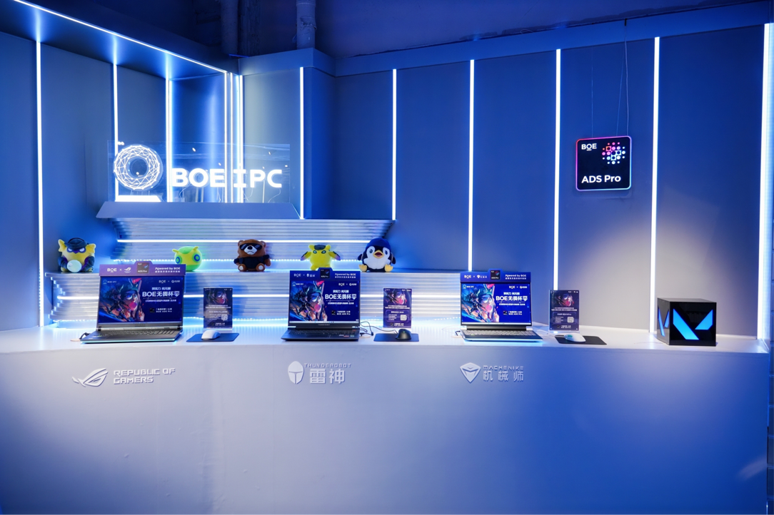 今年举办的 BOE 无畏杯总决赛活动上,BOE(京东方)还特别打造”Best of Esports 电竞高阶联盟”产品展区,集中展现了联盟伙伴们最新的电竞产品和尖端技术。依托于 BOE(京东方)自主研发的 ADS Pro、a-MLED 等创新技术赋能,AGON 爱攻 AG275QZW 显示器支持 260Hz 超高刷新率,以 1ms GTG 疾速响应时间为玩家提供高帧率、低延迟的游戏画质,确保流畅丝滑的游戏体验;ROG 枪神 8 Plus 超竞版笔记本,支持 60-240Hz 动态调频刷新率及 3ms 极速响应,玩家操作无比顺畅……一系列电竞黑科技产品凭借高清流畅的显示画面和酷炫的科技外观吸引了现场粉丝纷纷体验,为观众们呈现了一场融合竞技与科技的盛宴。