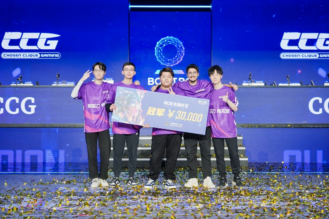 总决赛现场更是异彩纷呈,现场 Coser 开场秀、无畏契约水友赛等丰富的互动环节点燃了现场观众的热情,更有 BOE 无畏契约战队对战 JDG 无畏契约战队表演赛,BOE 战队面对职业战队分毫不让、竞出风采,让决赛前的氛围达到了高潮。在总决赛启动仪式上,BOE(京东方)副总裁刘毅、虎牙直播商业化副总裁焦阳、京东集团 3C 数码事业群电脑组件业务部总经理蔡欣洋一起揭开 BOE 无畏杯《无畏契约》2024 挑战赛总决赛的帷幕,总决赛最终在上一届亚军津门飞鹰战队与 CCG 战队的较量中展开对决,经过 3 局激战,CCG 队获得最终胜利,拿下本届赛事的冠军。