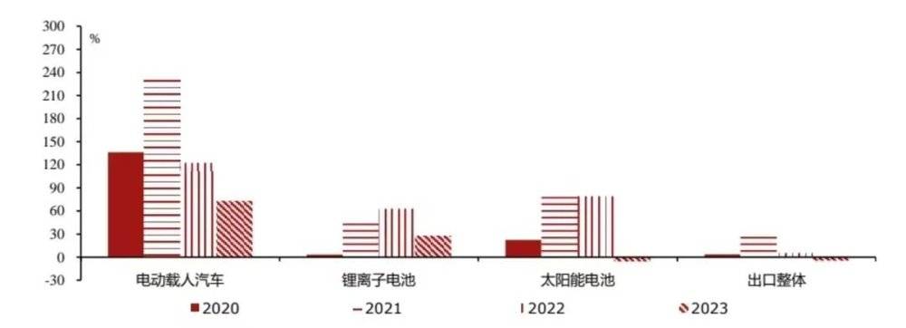 |过去数年,中国新三样产品及相关中间品出口激增。来源:Wind、中国银行研究院。