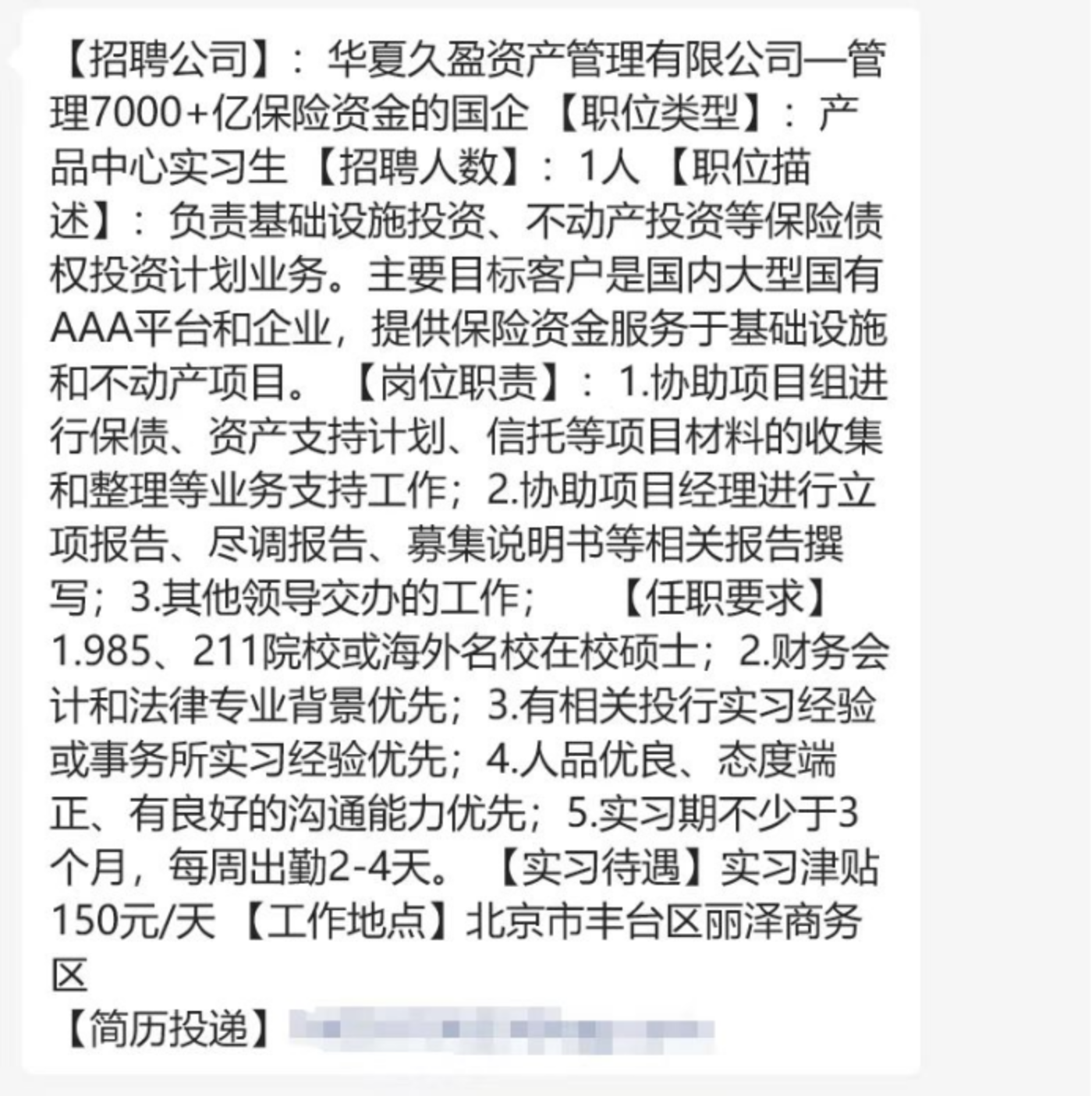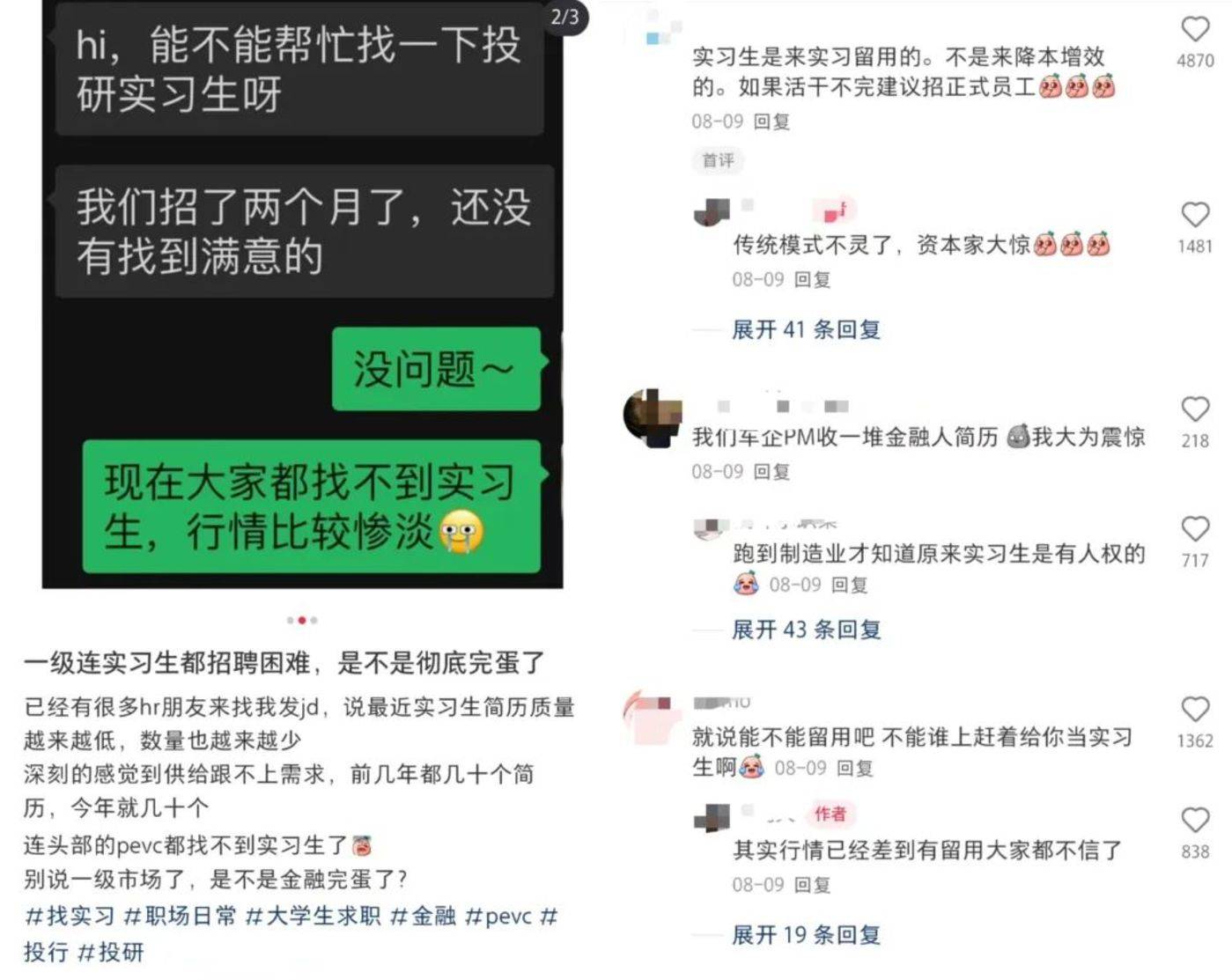 而另一端,投行、券商研究所的招聘者们,发现校园群里发布的JD,越来越难钓来优质实习生。过去没钱都抢着干的小黑工们,忽然硬气地挺直腰杆,挑剔起薪资待遇。