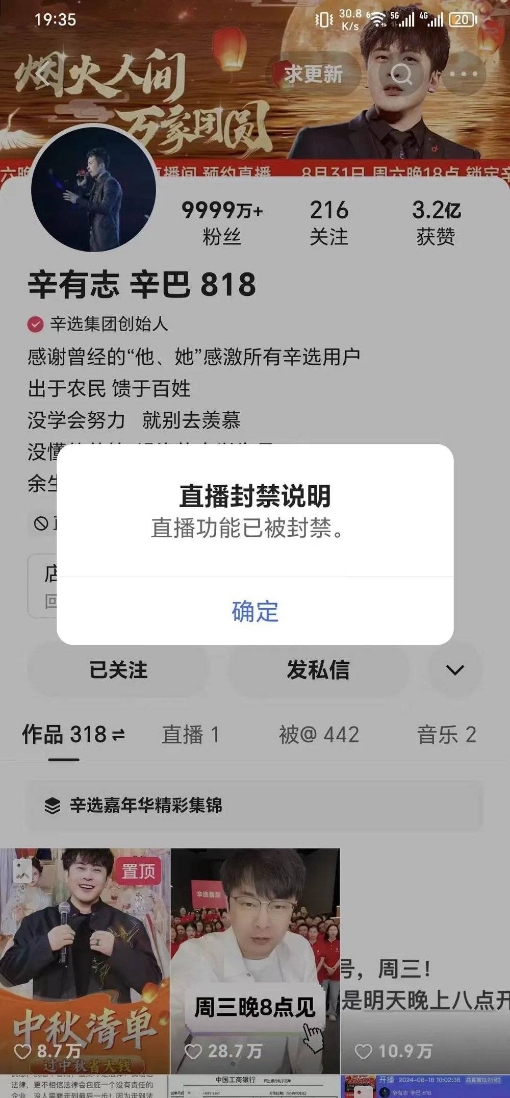 不过在辛巴承诺的9月11日晚八点,观众并没有等来辛巴开播,其个人账号早在开播前就已被快手提前封禁。