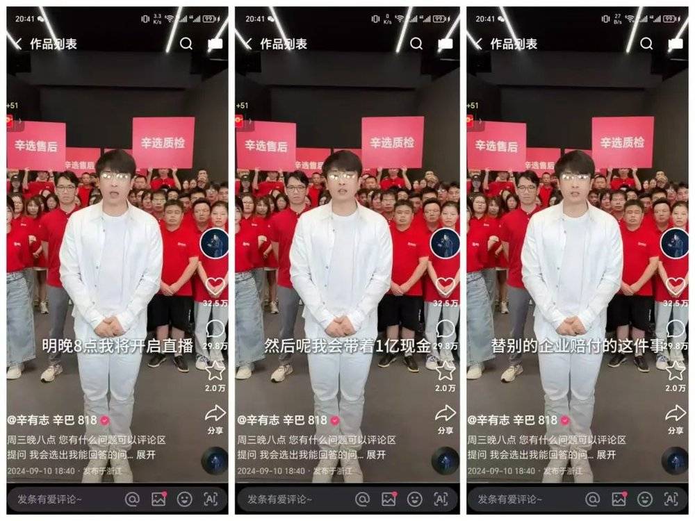 而在今日晚间,原本计划八点开播的主播辛巴,却遭到快手平台提前封禁。就在前一天,辛巴连续发布两条预告视频称,将组织200名客服、准备好1亿元资金,为此前其指责的小杨哥售后问题提供赔付。