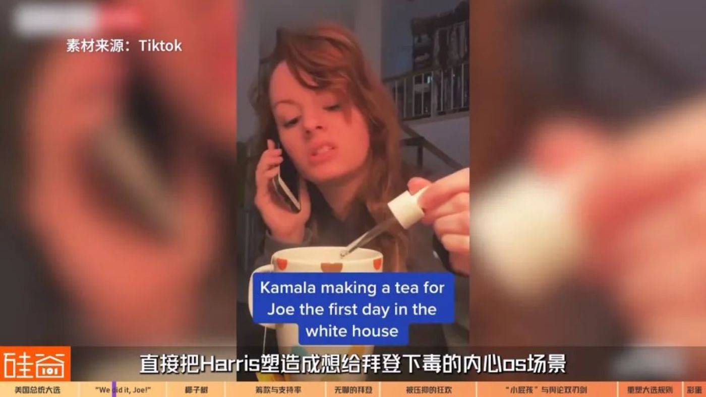 而特朗普和共和党的年轻支持者那边就更有“创意”了,直接把Harris塑造成想给拜登下毒的内心os场景。