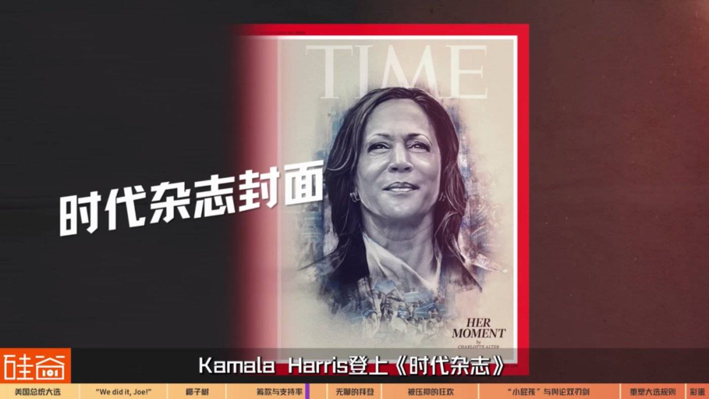 社交媒体上的病毒式传播和传统媒体的二次追踪报道给Harris带来了前所未有的曝光和热度。8月12日,Kamala Harris登上《时代杂志》,标题《Her Moment》(她的时刻)。