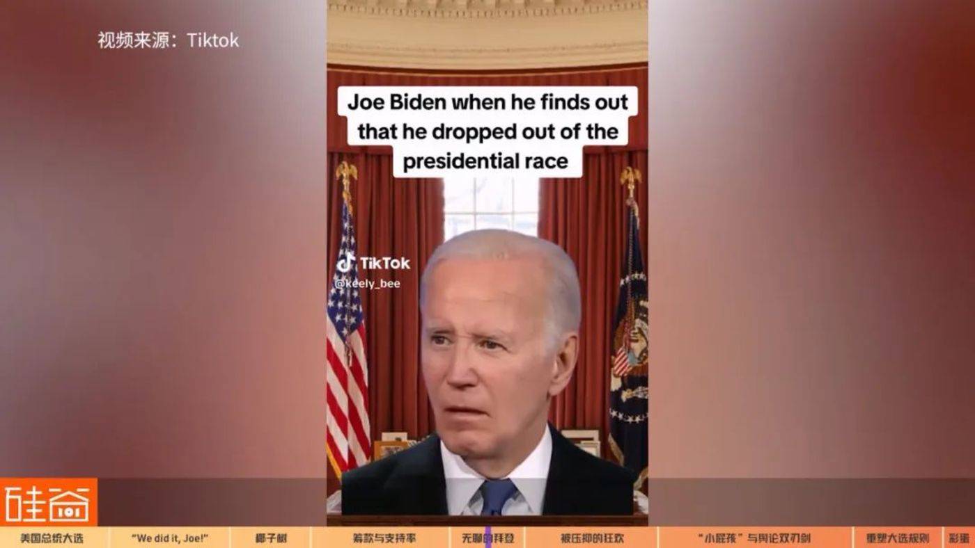 在Tiktok上,最火的还是拜登口吃、口误、步履蹒跚和瞬间僵住的嘲笑视频。