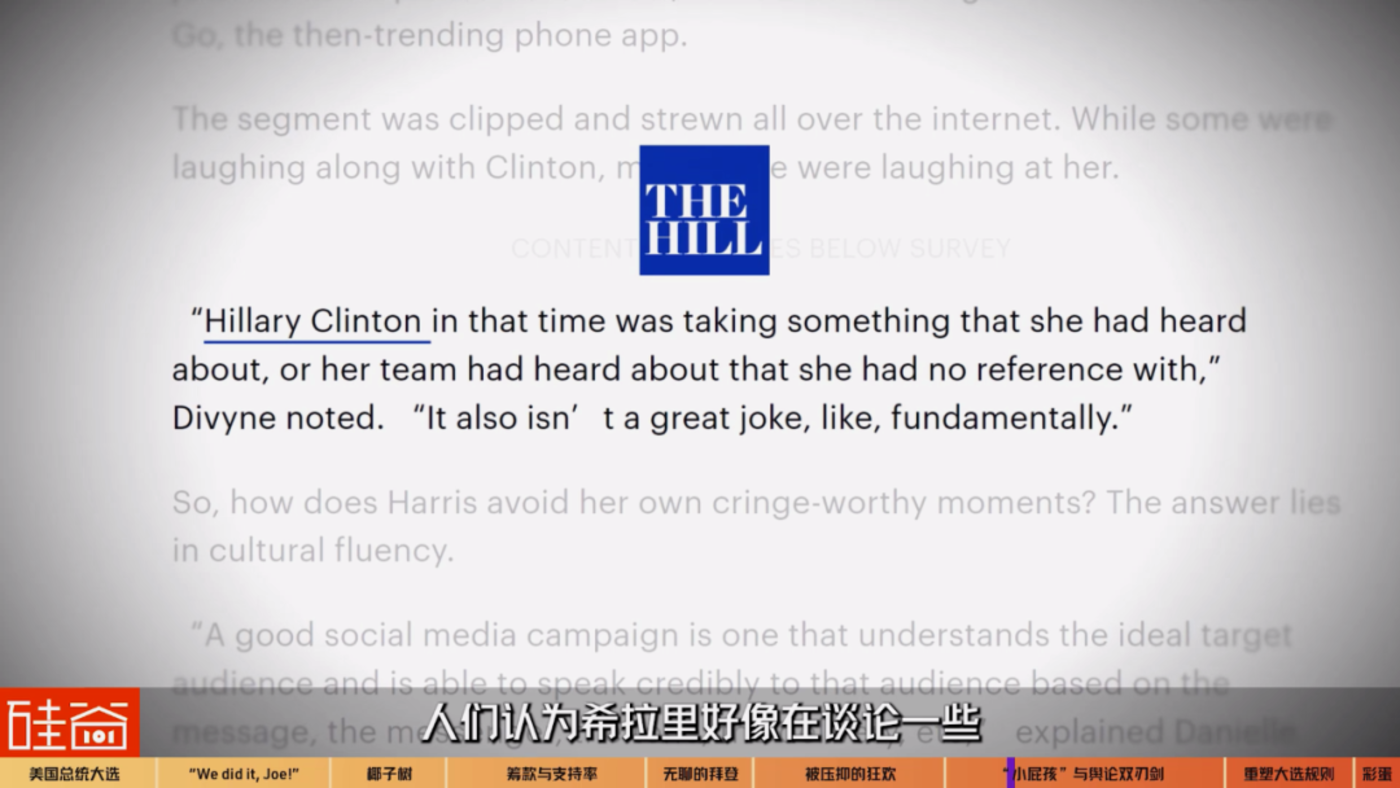 The hill的采访中就提到,希拉里好像在谈论一些她听说过或她的团队听说过但与她毫无关系的事情,也根本不好笑。