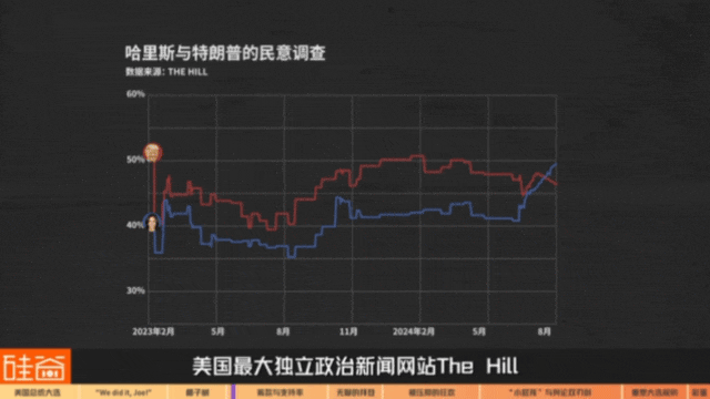 美国最大独立政治新闻网站The Hill在8月12日的民调显示,Harris在8月初实现了反超,目前领先特朗普3个百分点。