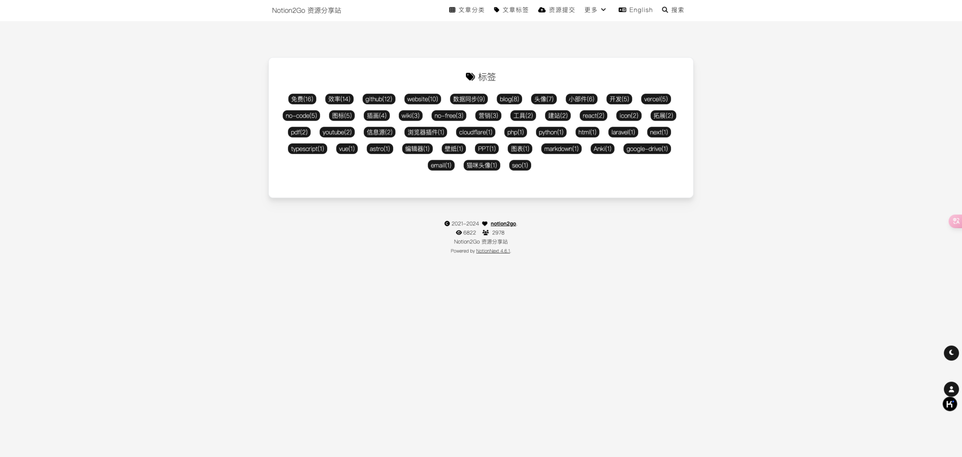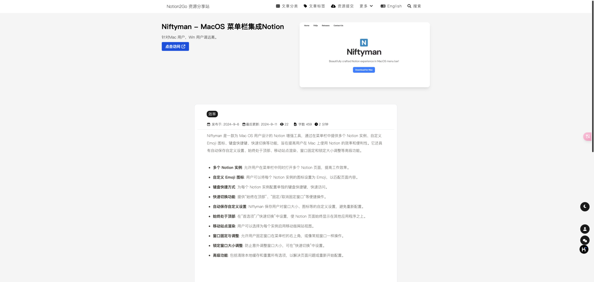 Notion2go 目前已经收录数百款 Notion 相关的 插件、程序、主题等资源,目前还在不断更新和扩充,确保用户始终能够获取到最新、最实用的 Notion 资源。它就像一个不断成长的宝库,每次访问都能给你带来新的惊喜。