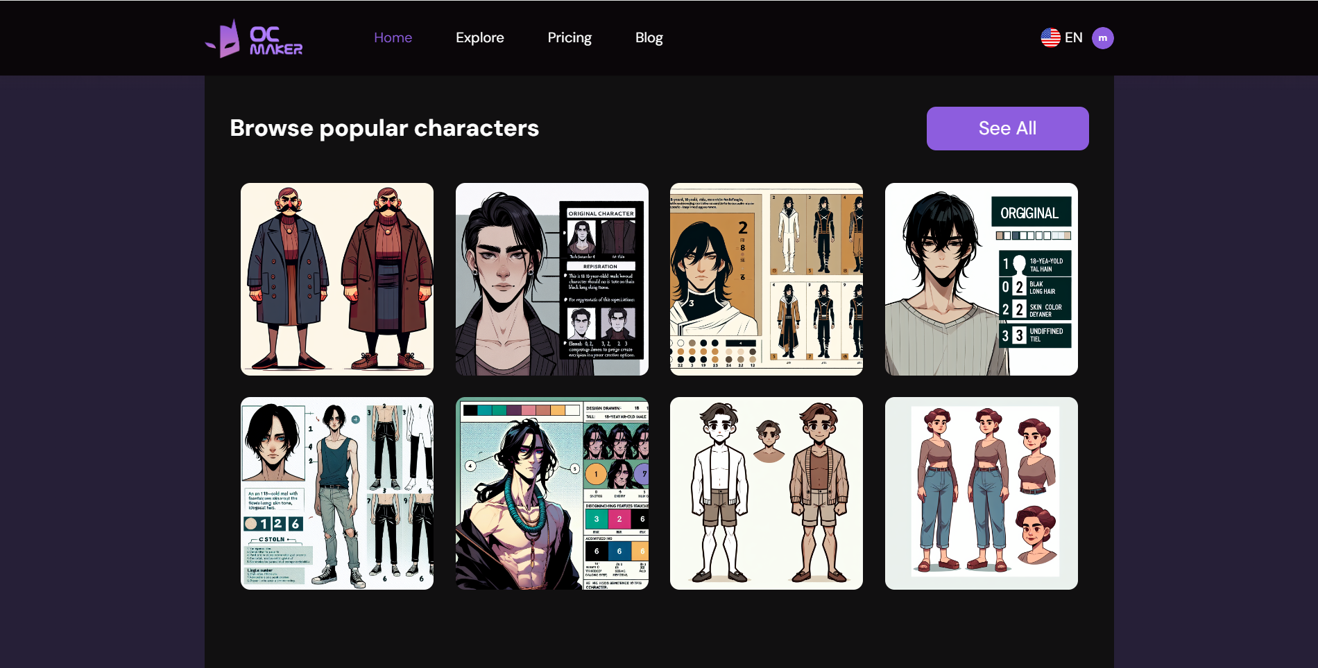 OC Maker 是一个使用 AI 技术根据用户提供的文本描述生成原创角色图像的网站。只需输入您所希望的原创角色的详细文本描述,我们的 AI 将生成与您的描述相符的图像。这个过程快速且简单,允许高度的创意和个性化。有了 OC Maker,您可以塑造一个不仅在视觉上吸引人,而且富有故事情节和个性的角色,让艺术创作变得有趣。同时您可以分享作品,并添加到我们的画廊,在我们的人物画廊展示你的角色,供其他人欣赏。