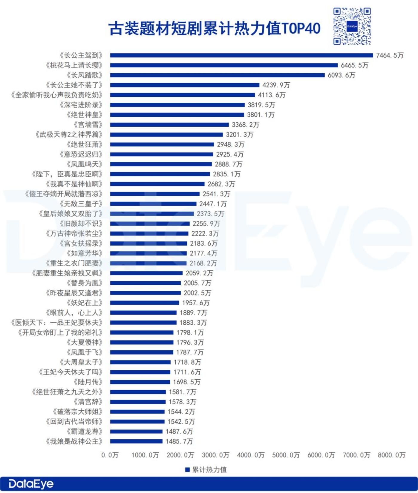 据DataEye-ADX数据,暑期档TOP40的古装短剧中,虽然也出现了新元素,但整体来看“古装+情感”仍是主流,且热力值较高,可见“情感拉扯”“爱恨情仇”此类内容需求仍然存在。曾经热衷于观看古偶剧的观众,正从长剧市场流向短剧市场。