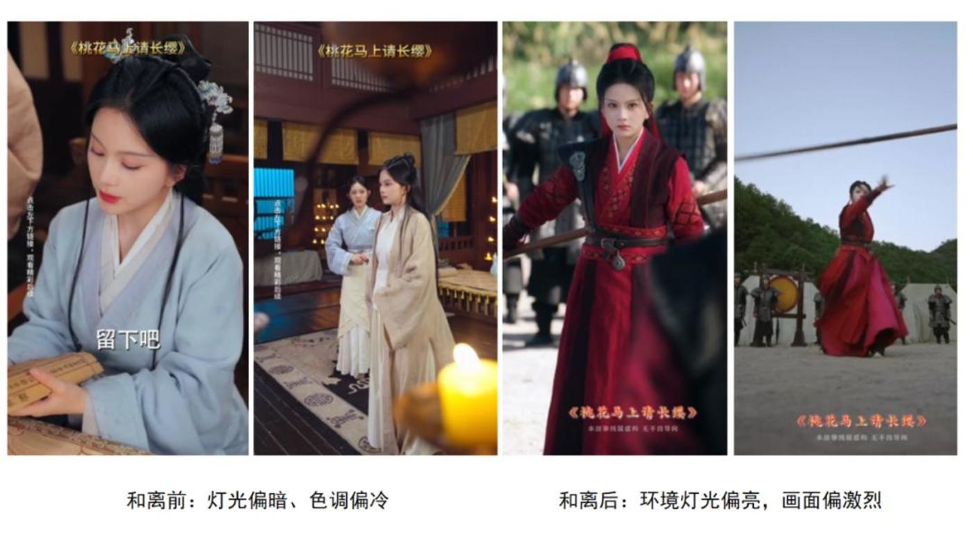 比如一个月以来,一直收视长虹的《桃花马上请长缨》,就是得益于其出色的影视手法带来的质感。《桃花马上请长缨》中,导演通过对光影、色彩和镜头运动的巧妙运用,成功地营造出了不同的氛围和情感基调。