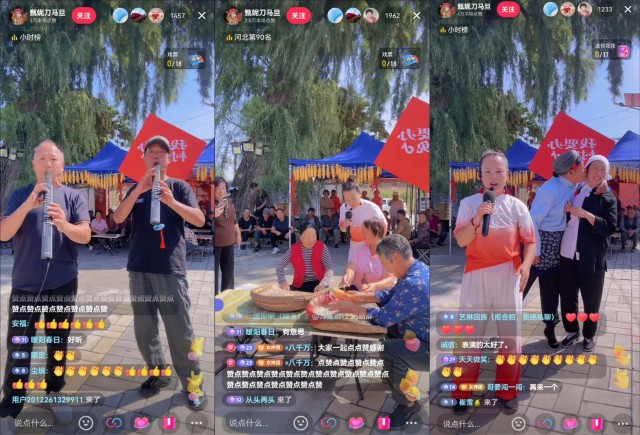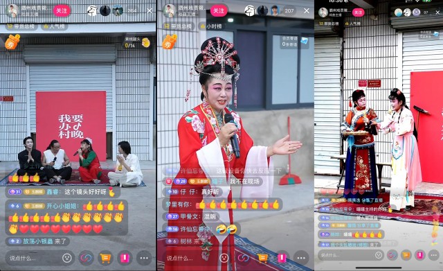 9月19日一早,河北保定徕源县东山村的广场已热闹起来,村民们围坐戏台边。翘首以盼间,主播@甄妮刀马旦 穿着戏服扮作穆桂英登场。只见她在舞台中央挥舞长枪,将“回马枪”“宝剑进鞘”耍得威风凛凛,引得现场村民与直播间观众连连叫好。这场“村晚”线上观看人数超过了77.4万。
