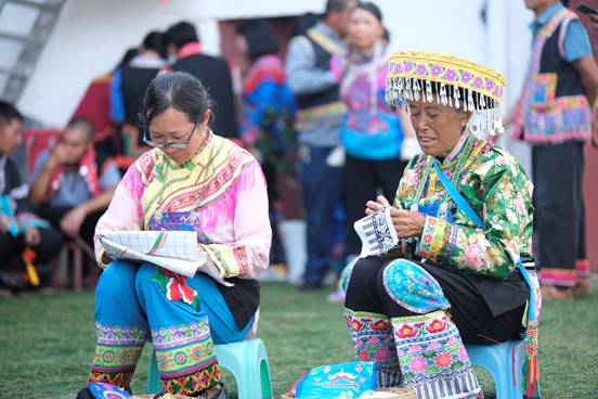 白沙村是红彝族聚居地,非遗艺术丰富多样:几十位村民手拉手围成圈,跟随笛声跳起庆贺丰收的蹢脚舞;60多岁的老奶奶们眼不花、手不抖,展示彝族非遗刺绣绝活儿······“听说要办‘村晚’,村民们都很热情,干完农活后就开始准备节目。”曲木阿依说。乡亲们欢聚一堂,一边吃着刚摘下的石榴,一边欣赏表演。