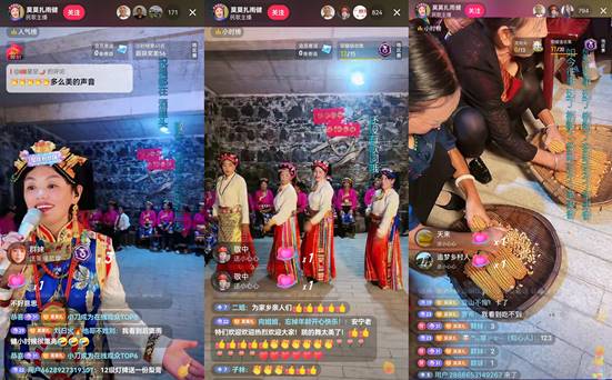 在《留客歌》的大合唱中,白沙村“村晚”落下帷幕,71.3万人在直播间里观看了演出。曲木阿依难掩喜悦,“这次直播让更多粉丝朋友认识、了解我们彝族的民族文化。”2019年,她开始在抖音尝试直播,专业的演唱吸引了超百万粉丝,打赏收入则补贴了家庭开支,让她迎来事业的第二春。