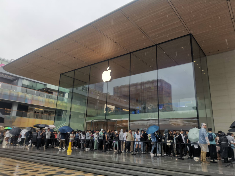 图注:三里屯苹果旗舰店等首发的果粉,图源:字母榜拍摄