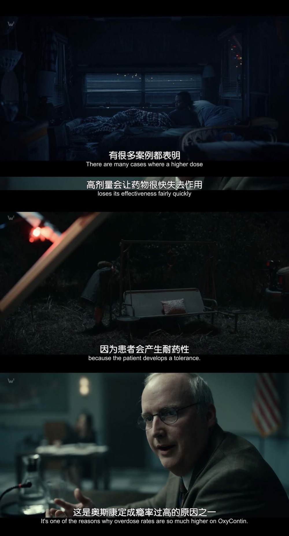 美剧《成瘾计量》详细呈现了普渡制药公司生产的奥施康定(OxyContin)如何毁掉了几代美国人,万斯的母亲就是无数受害者之一。从最开始的止痛药,发展到更大剂量的成瘾药物,最后是可卡因,终点是海洛因,这几乎是大部分底层美国人的成瘾路径。
