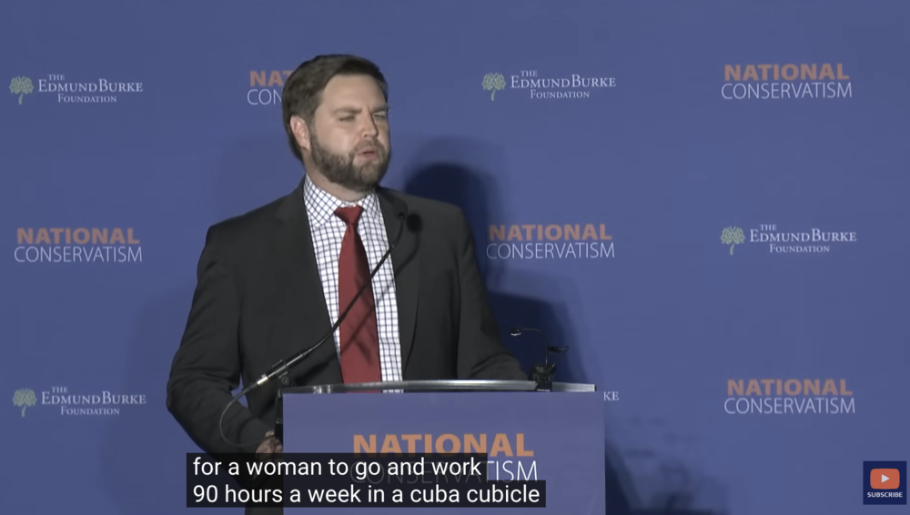 在堕胎和女权问题上,他甚至比特朗普还要保守。他说的话越极端,就越能吸引与他同一阵营的人,让他们成为万斯个人IP的铁票仓。