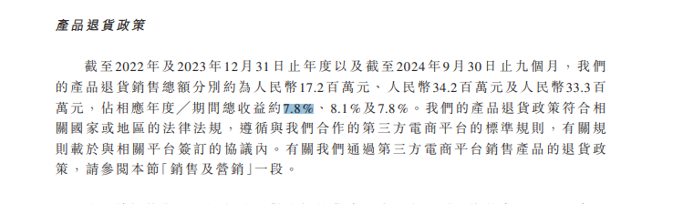 然而,高速增长的背后亦有隐忧。相关产品的退货问题如同一抹阴霾笼罩。报告期内,退货的销售总额分别达到1720万元、3420万元、3330万元,其中2023年退货金额同比近乎翻倍增长,产品质量管控的风险愈发凸显。