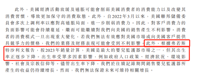 需要说明的是,根据弗若斯特沙利文报告,按2023年销量计算,美国是最大的婴儿监护器市场之一,但其出生率正逐步下降,这无疑成为了聚智科技未来高速成长的巨大隐忧。