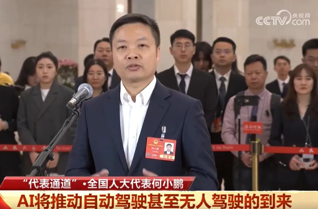 3月8日,何小鹏亮相2025年全国两会代表通道,并发表感言:一个全新的AI时代正在到来。我们有两个变革: